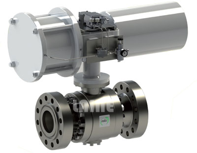 美国《LAINE》莱恩-进口气动高压球阀(Pneumatic high-pressure valve)是双(单)作用气动活塞式执行器与进口BKH高压球阀组成,是一种自动控制和遥控的新型阀门。