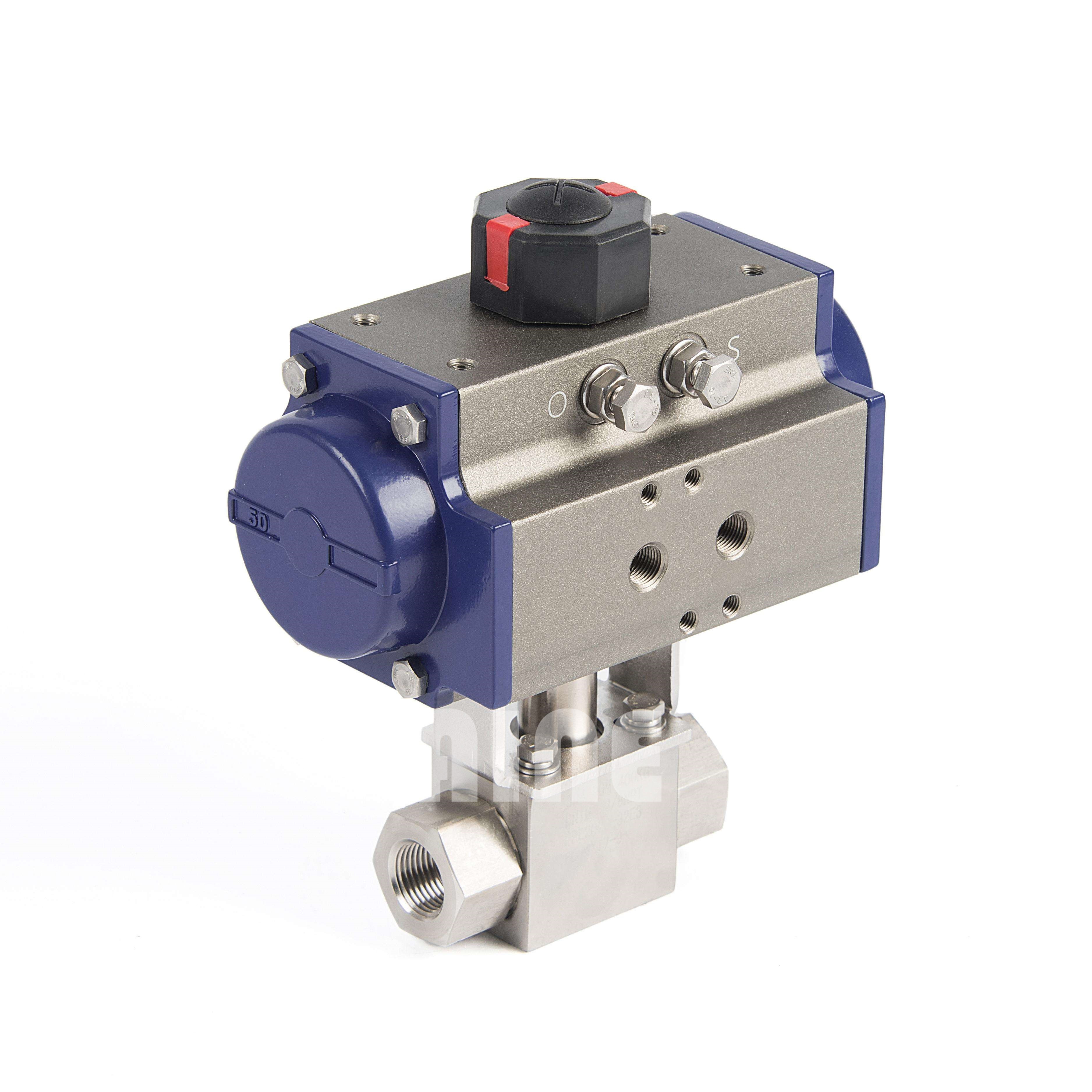 广泛的用于加气站、装罐车等高压管道,其连接形式分内螺纹(G/NPT)、焊接、卡套等。气动活塞式执行器采用低摩擦材料,缸体内外表面经硬质阳较氧化防腐处理,大大提高了气缸的使用寿命。